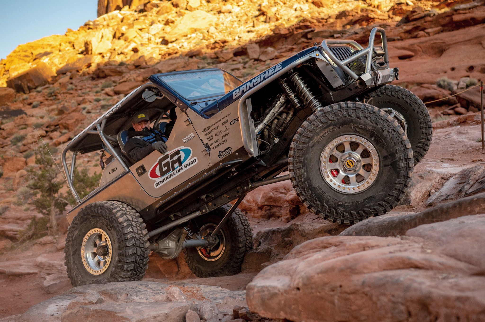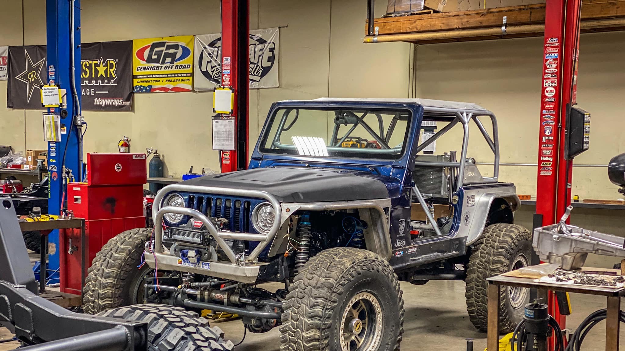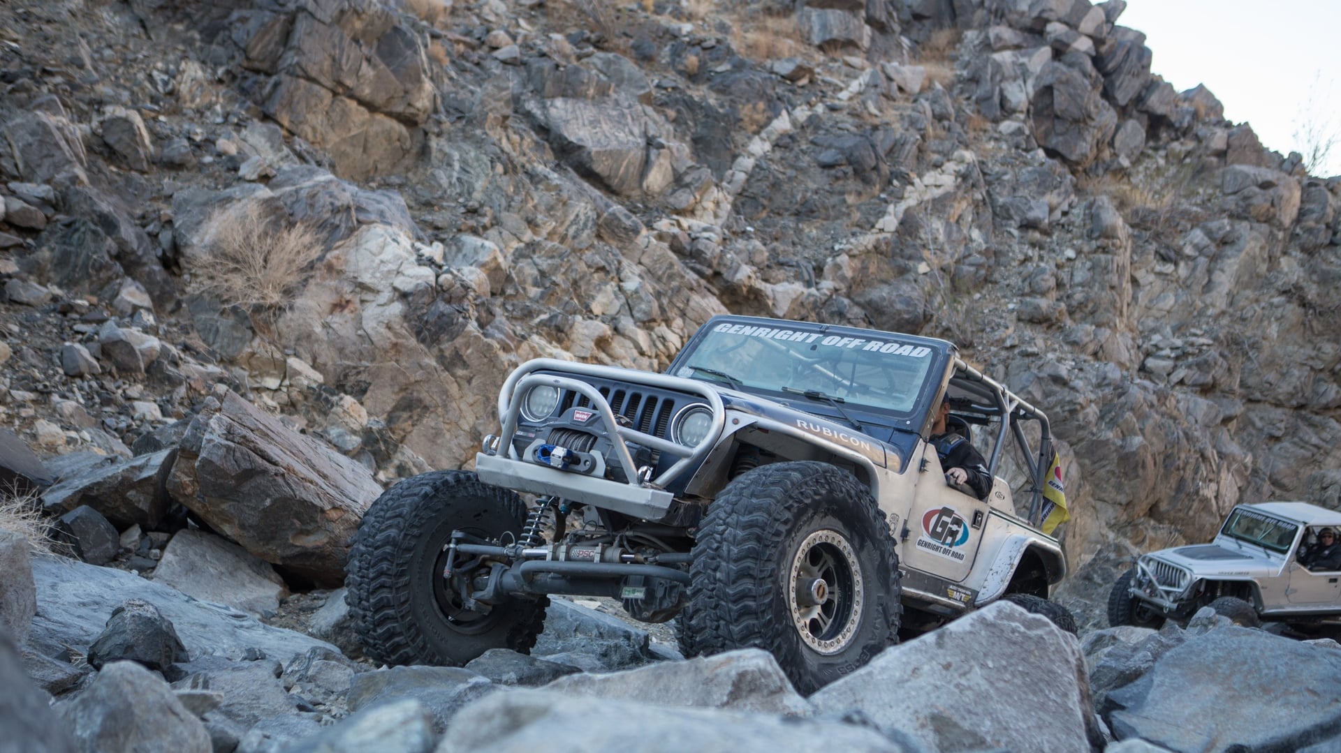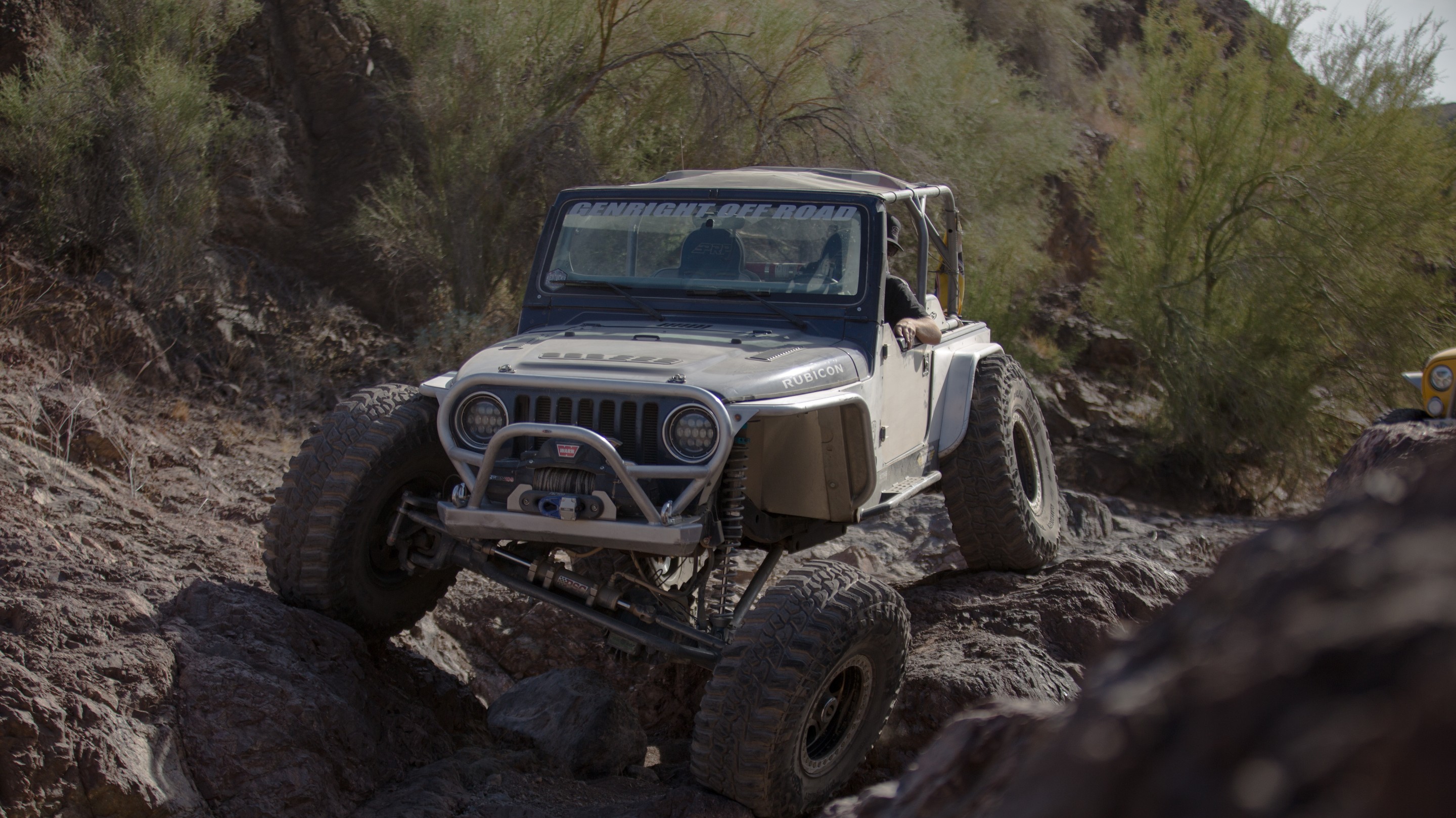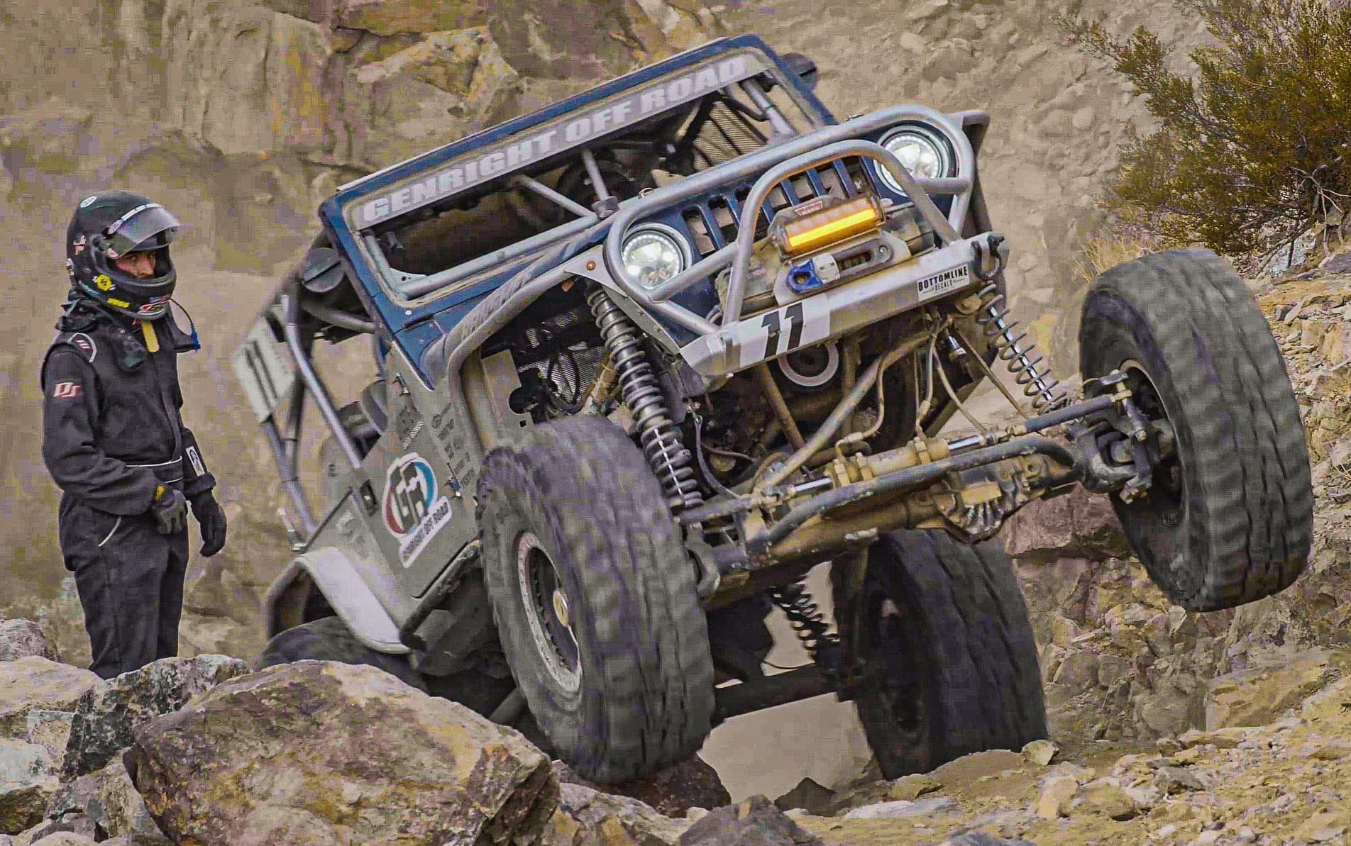A 2005 Jeep Wrangler Rubicon built using GenRight Suspension, Armor, and cage!