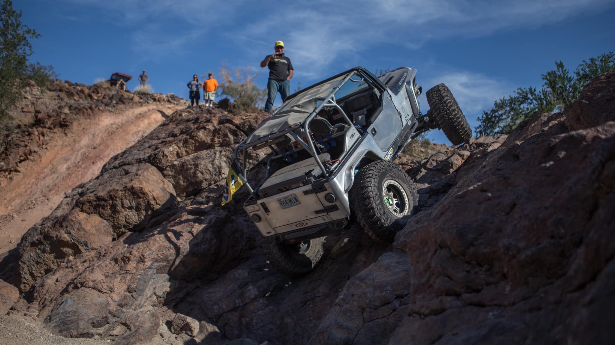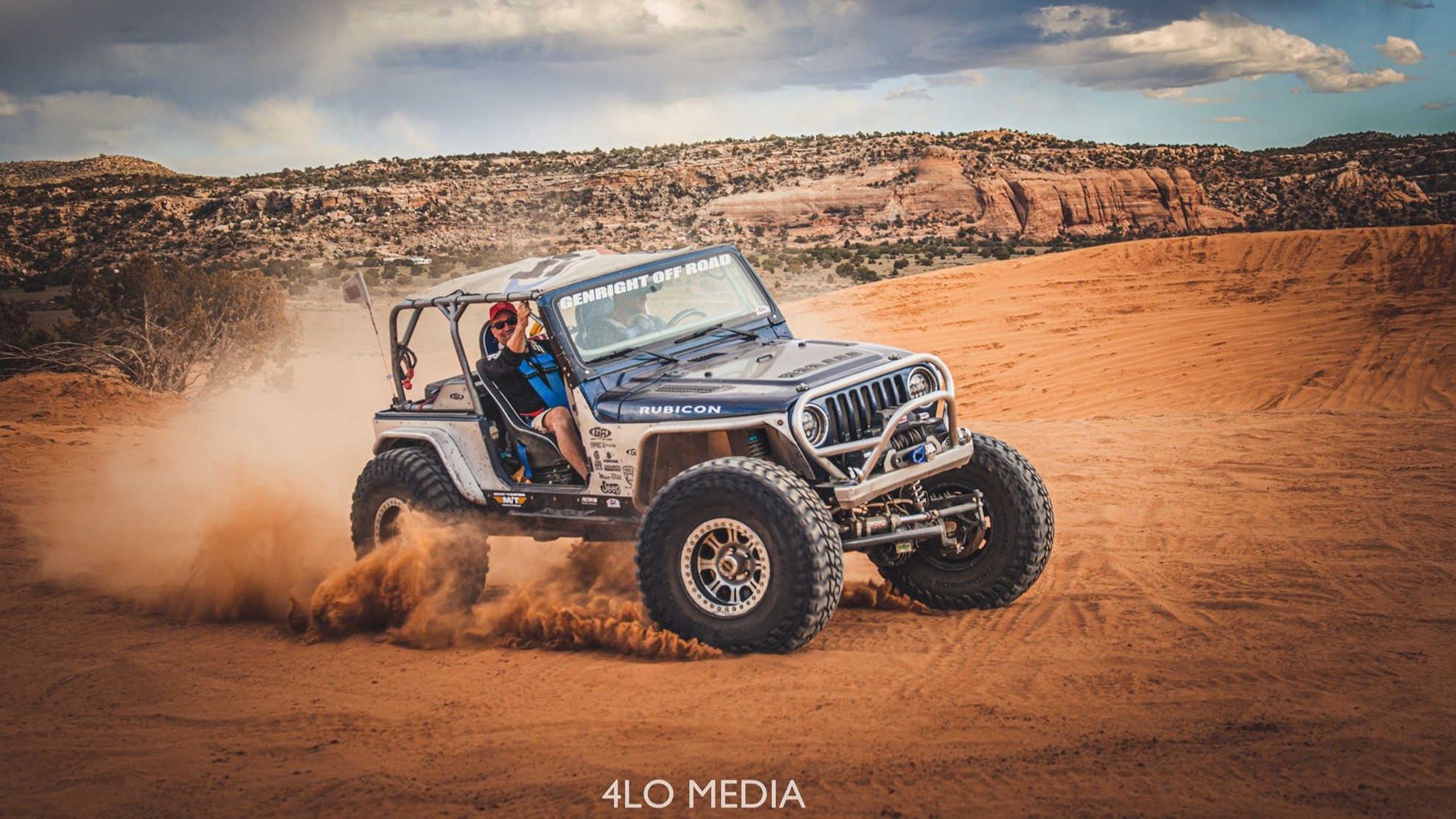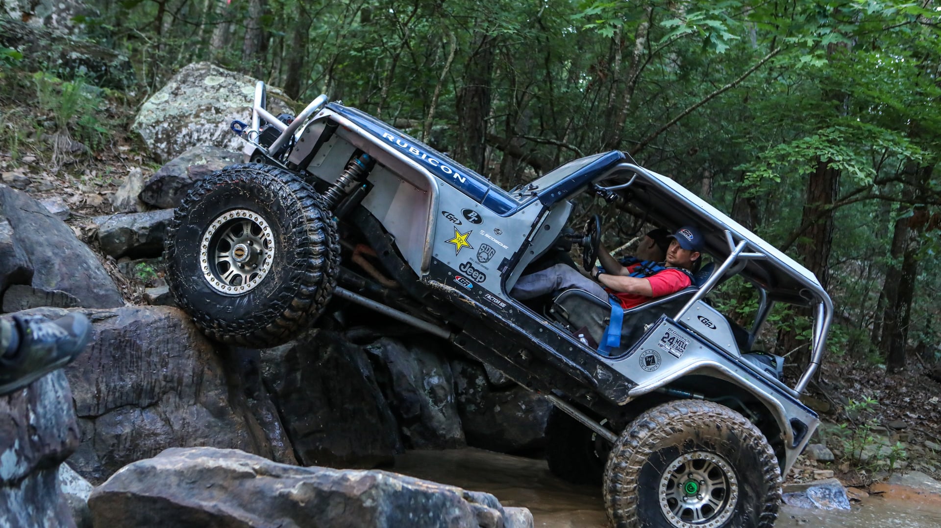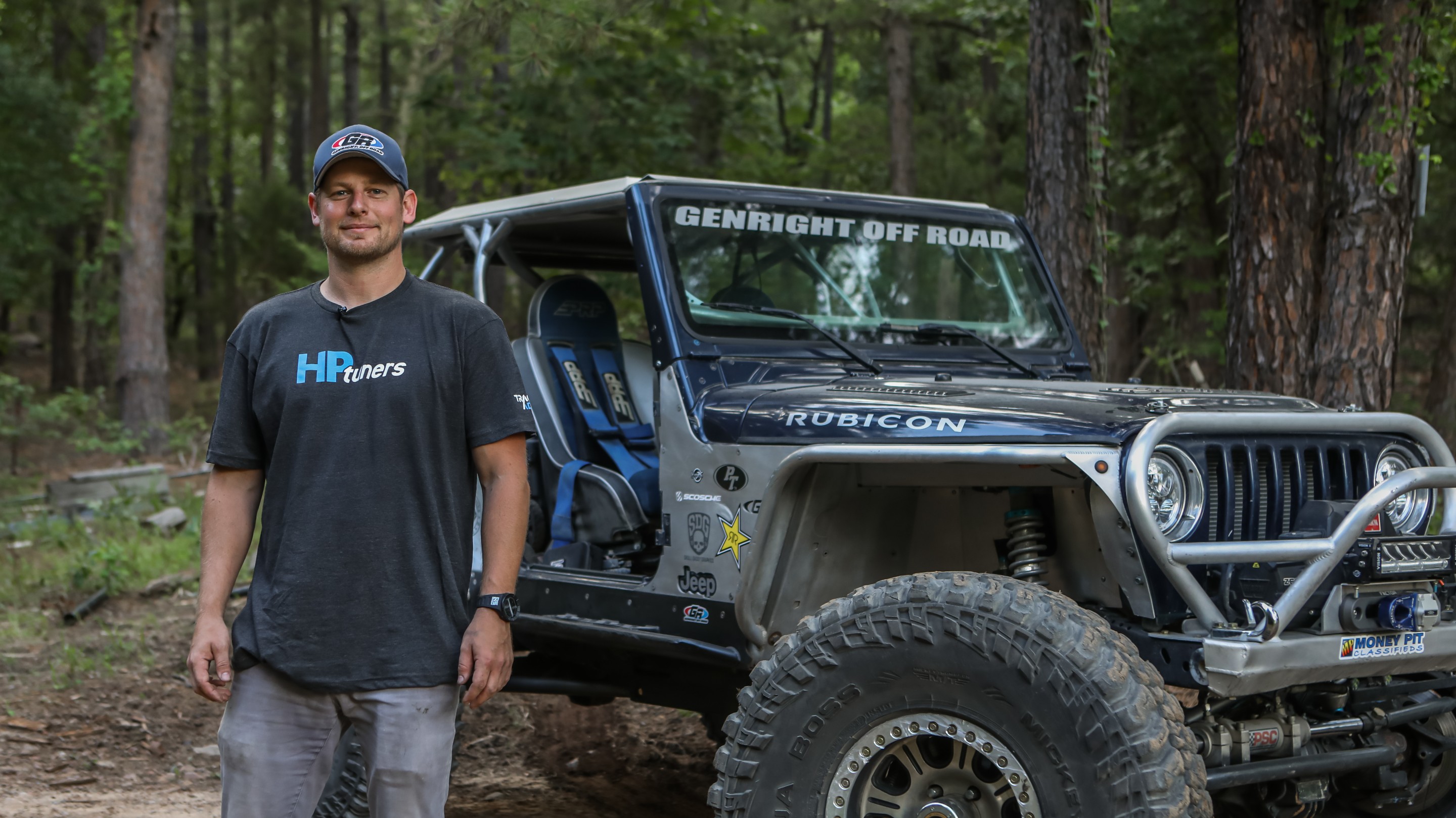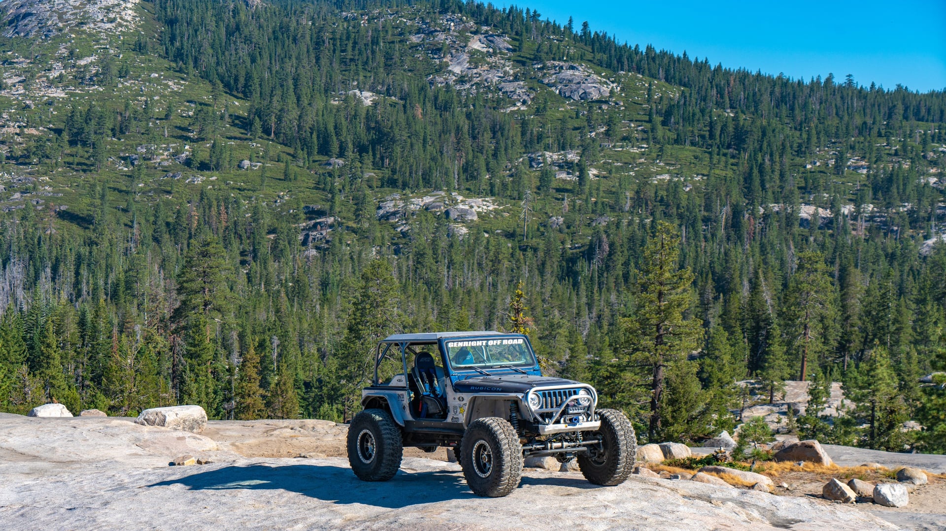 A 2005 Jeep Wrangler Rubicon built using GenRight Suspension, Armor, and cage!