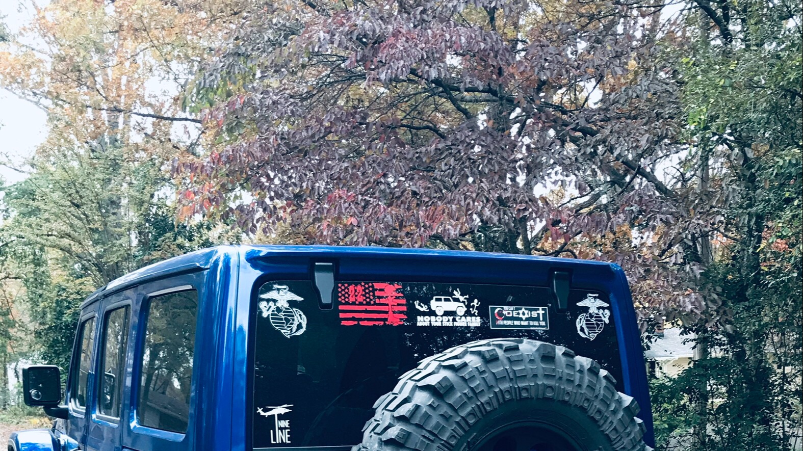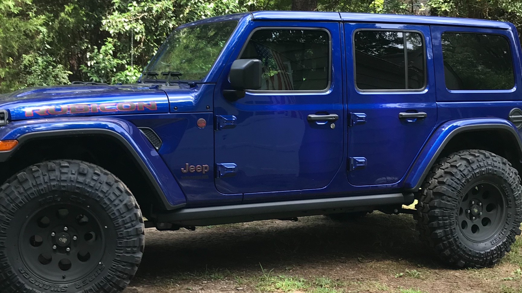 Mostly stock for now except for www.jcroffroad.com rear bumper w/tire carrier, 37x12.5x17 Mickey Thompson MT and Bestop sun-rider top....