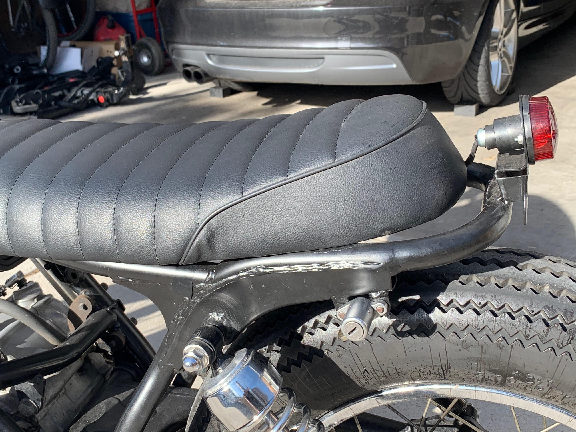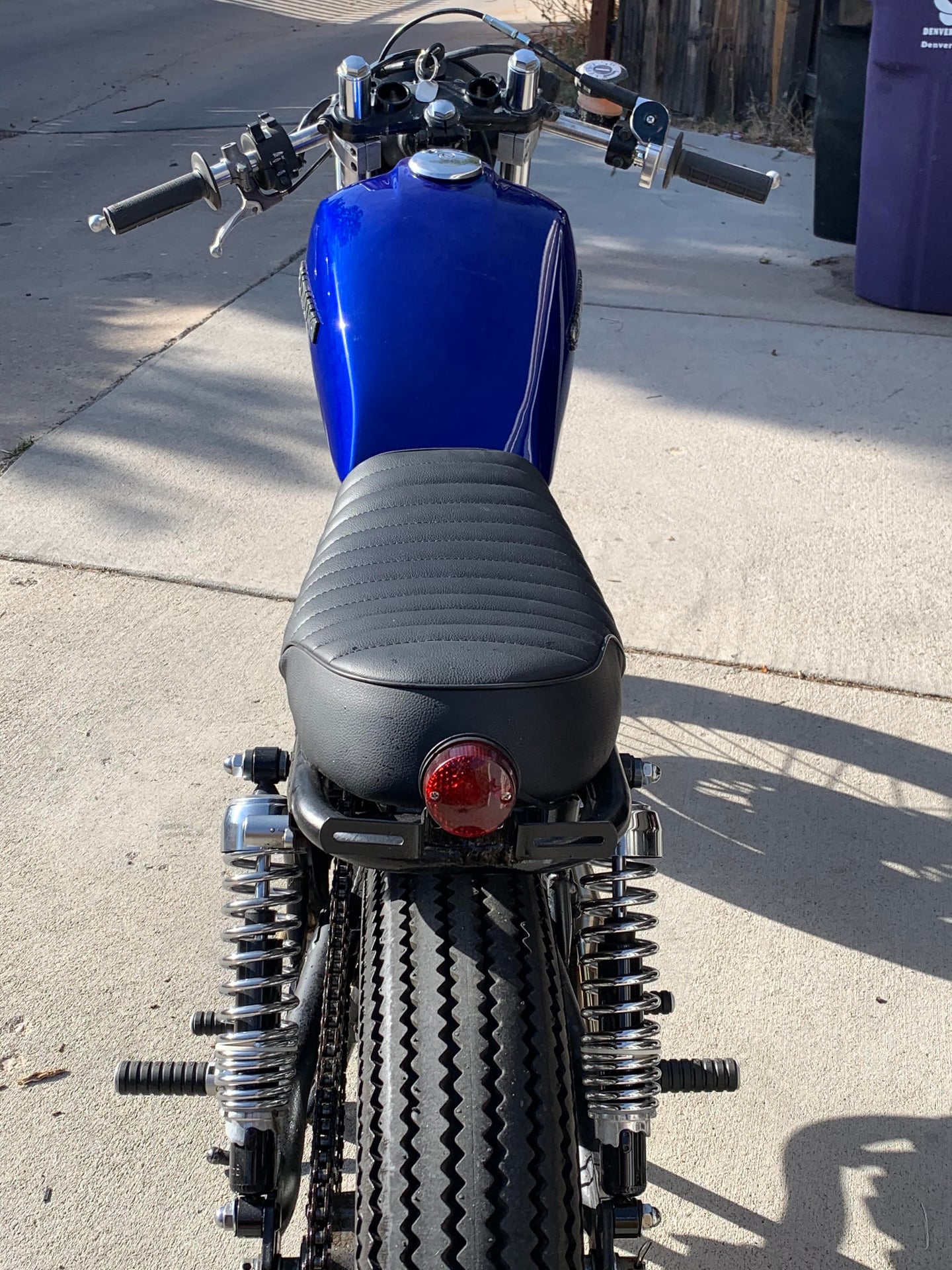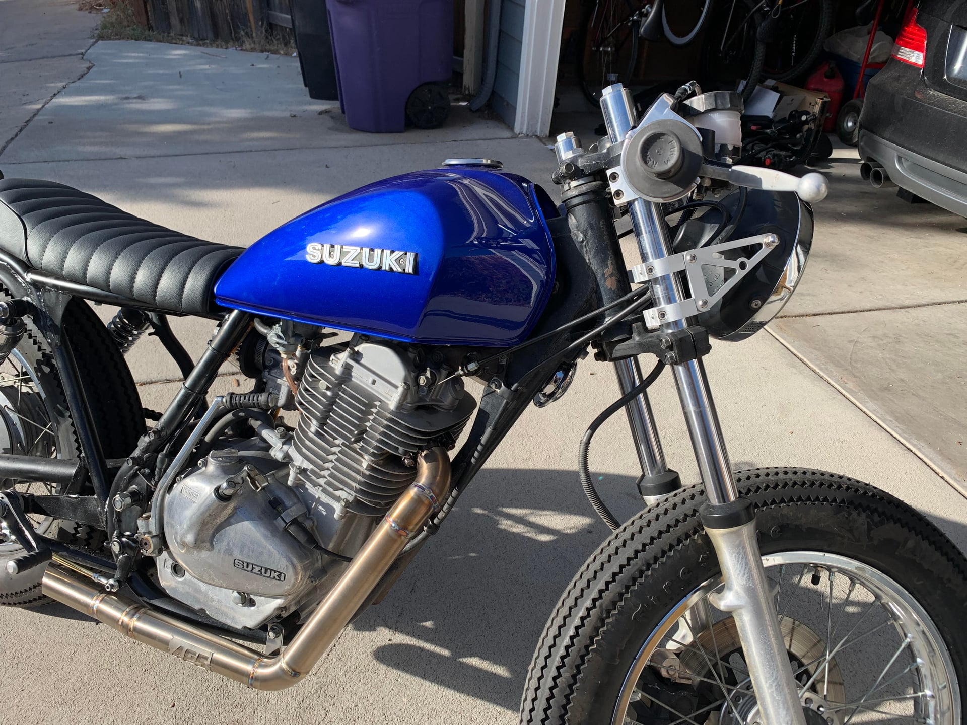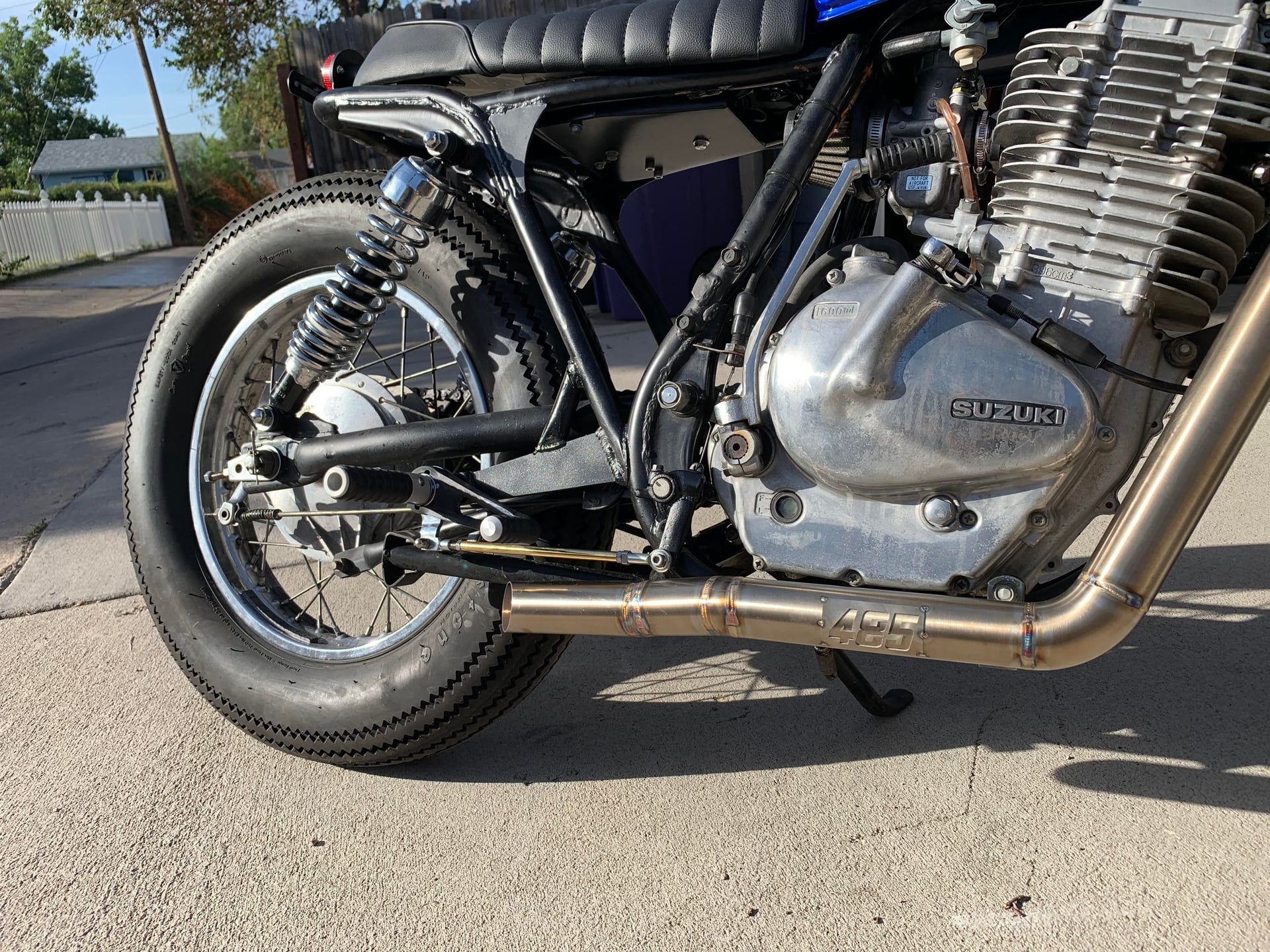 This cafe racer is custom built from a 1980 Suzuki GN400. Single cylinder 400cc “thumper.” The custom rear sets and controls were moved back for a tr...