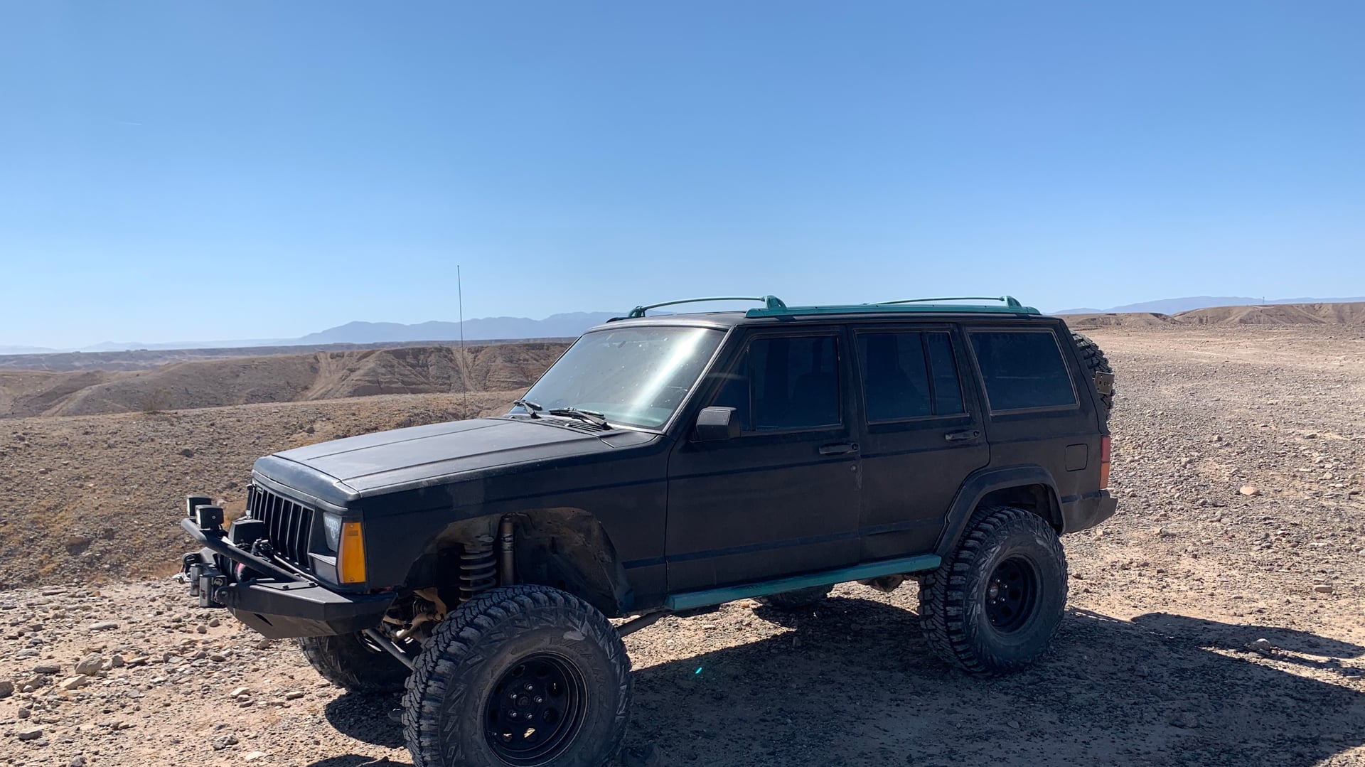 1994 Jeep Cherokee. 6 cylinder, 4x4 with 157,000 miles. It has a 5.5 inch Rubicon Express long arm kit, Spartan lockers front and back, chromoly axles...